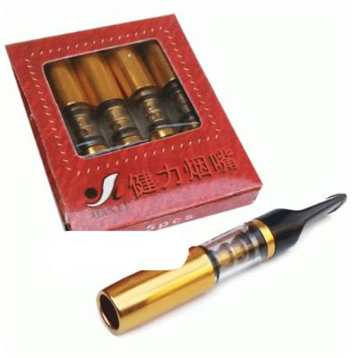 Товар относится к типу мундштуков-пружин — малого размера, прямой формы и с гладкой поверхностью. Его цвет — комбинация черного и золотистого оттенков. Основные элементы: трубочка и гнездо для сигареты. Продается в наборе по 5 шт.