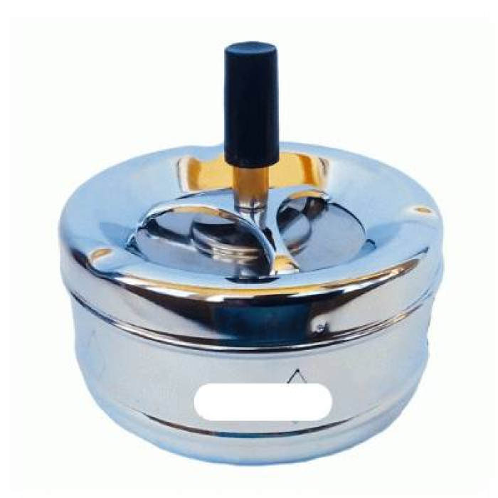 - механизмом, работающим по принципу юлы. При нажатии на кнопку крышка раскручивается и сбрасывает пепел вместе с окурками внутрь изделия.