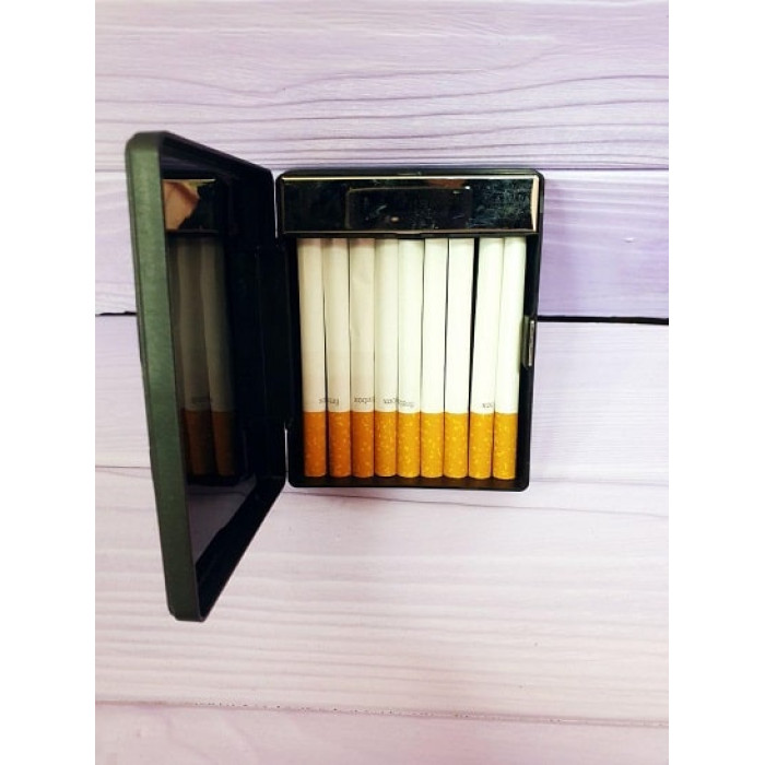 Этот портсигар — одно из самых стильных решений для поклонников эстетичного курения. В него поместиться 20 фабричных или самодельных сигарет стандартного размера. Конструкция похожа на книжку, однако папиросы расположены только с одной стороны — необычное, но удобное решение.