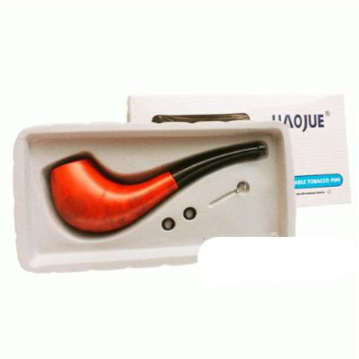 Элегантная курительная трубка из прочной керамики выполнена в ярком оранжевом цвете и дополнена глянцевым черным пластиковым мундштуком. В комплект входит удобная деревянная подставка.